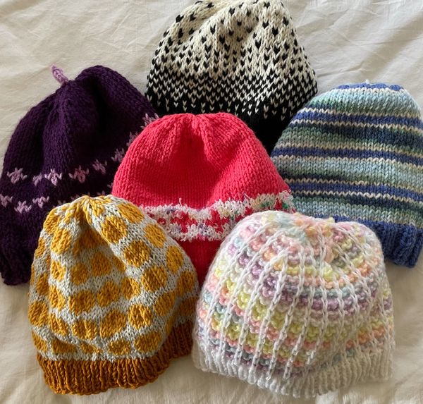 Additionally, we also donate hats every year to Knit the Rainbow for unstably housed youth in Chicago. These also must be made of acrylic or machine washable/dryable yarn.